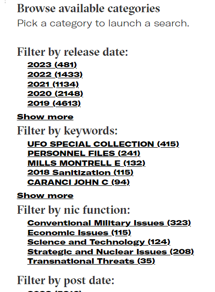 Możemy też przejrzeć już pokatalogowane zbiory kategorii https://www.cia.gov/readingroom/historical-collections
